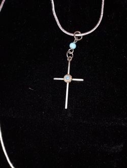 Solid 925 antique cross dangle pendant w/ turquoise on .925 2mm 20" snake chain$40Horseheads, NY