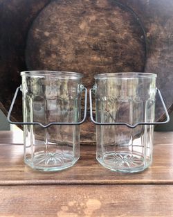 Two Vintage Pressed Glass Jars With Metal Handles Kitchen Storage Candy Vase$25Buena Park, CA