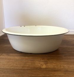 Large Vintage Enamelware Tub Basin White with Black Trim Country Cottage Farmhouse$30Buena Park, CA
