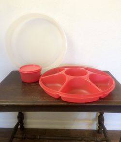 Tupperware Serving Center Set Raspberry Red 7 Compartments With Lid and Center Bowl$20Buena Park, CA