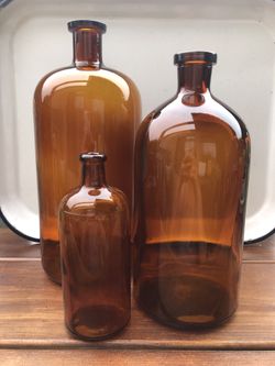 3 Vintage Amber Brown Glass Apothecary Bottles Farmhouse Industrial Decor$80Buena Park, CA