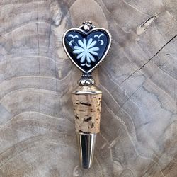 Brighton Wine Bottle Stopper Black Heart Flower Inlay Barware$20Buena Park, CA
