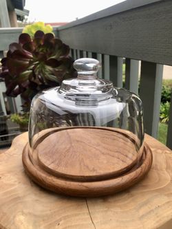 Vintage Dolphin Teak Wood Cheese Board Glass Cloche Dome MCM Server$25Buena Park, CA