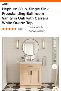 Hepburn 30 in. Single Sink Freestanding Bathroom Vanity in Oak with Carrara White Quartz Top$499Glendale, AZ