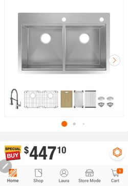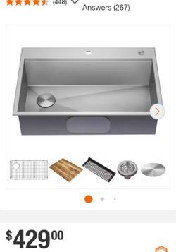 Loften 33 in. Drop-In/Undermount Single Bowl 18 Gauge Stainless Steel Kitchen Workstation Sink with Accessories$260Glendale, AZ