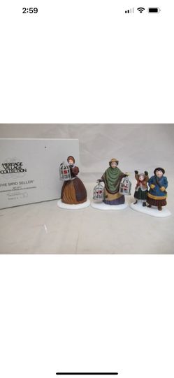 HERITAGE VILLAGE Dept 56 THE BIRD SELLER Set of 3 #5803-3 w/Box "RETIRED"!$12Big Spring, KY