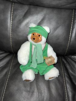 1989 Robert Raikes Bear, Elf 660335, Green Corduroy Scarf, Jingle Bell Hat, VTG$18Big Spring, KY