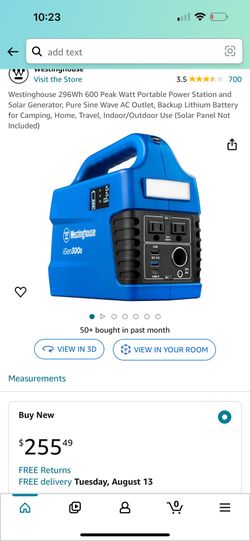 Westinghouse 296Wh 600 Peak Watt Portable Power Station and Solar Generator, Pure Sine Wave AC Outlet, Backup Lithium Battery $150Colorado Springs, CO