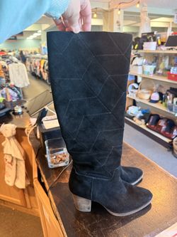 Lucky Brand Black Suede Leather Stacked Wedge Heel Tall Boots Size 7.5$39Tacoma, WA