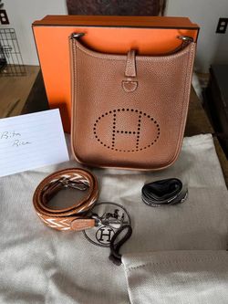 Authentic HERMES Evelyne PM Shoulder Bag D Silver metal light brown orange$1,300Beverly Hills, CA