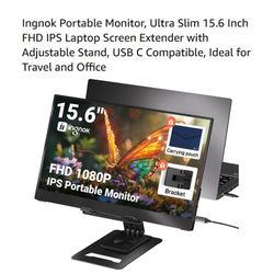 Monitor, Ultra Slim 15.6 Inch FHD IPS Laptop Screen Extender with Adjustable Stand, USB C Compatible, Ideal for Travel and Office