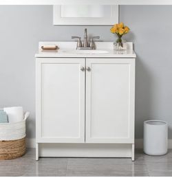 Allen + roth Ronald 36in white undermount single sink bathroom vanity with white engineered stone top with faucet Retail price $800 $449Greenbelt, MD