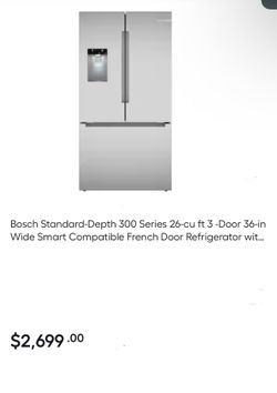Bosch Standard-Depth 300 Series 26-cu ft 3 -Door 36-in Wide Smart Compatible French Door Refrigerator with Ice Maker with Water and Ice Dispenser ( St$1,399Greenbelt, MD