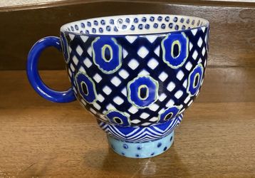 Anthropologie Retired Coffee Mug Footed Blue Mosaic Geometric Pattern$10Helotes, TX