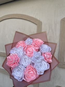 White And Pink Ribbon Bouquet $58Vista, CA