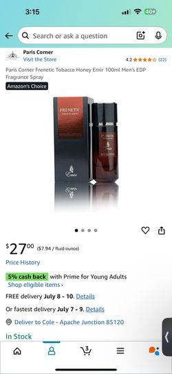 Paris Corner Frenetic Tobacco Honey Emir 100ml Men's EDP Fragrance Spray 2.7 Fl Oz$10Mesa, AZ