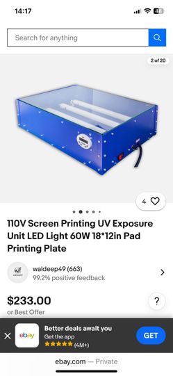 Screen Printing UV Exposure Unit LED Light$160Los Angeles, CA