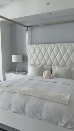 Modern Luxury Canopy Bed — White Upholstered with Chrome & Acrylic Frame$1,500Miami, FL