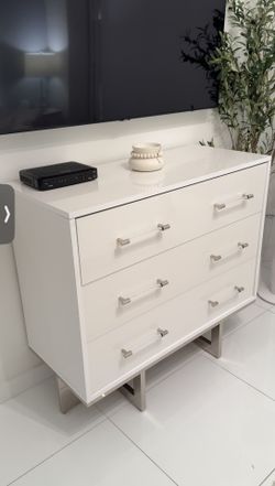 Modern Luxury White 3-Drawer Dresser — High Gloss, Acrylic Handles$400Miami, FL