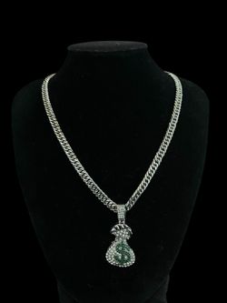 Money Bag Pendant 925 Silver Mega Double Cuban Cut Chain $250Chicago, IL