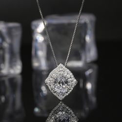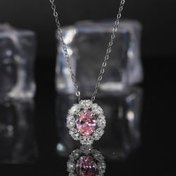 925 Sterling Silver Princess Pink Diamond Necklace $30Chicago, IL