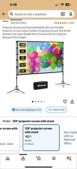 120 inch Portable Projector Screen Indoor Outdoor Projection Screen 16:9 4K HD Wrinkle-Free Light-Weight Movie Screen with Carry Bag for Backyard Movi$50Aurora, IL