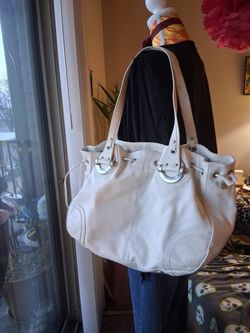 Adrienne Vittadini Xtra Lg White Leather Drawstring Shoulder Handbag $11Salt Lake City, UT