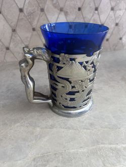 Vintage Japanese Dragons Tankard Blue Cobalt Glass Chrome Nude Woman Handle Stein Mug$25Menifee, CA