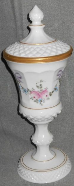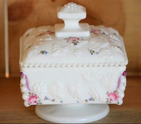 Vintage Westmoreland Milk Glass Hand Painted Pedestal Candy Dish With Lid$20Garner, NC