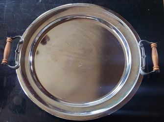 Vintage Silver Serving Tray With Wood Handle $10Garner, NC
