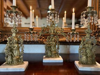 Vintage Brass & Marble 3-Piece Girandole Candelabra Mantle Candle Hold$550Menifee, CA