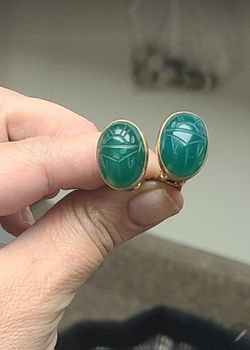 Vintage 1950s Green Chrysoprase Scarab 12K Yellow Gold Filled Screw Back Scarab Earrings$85Oxnard, CA
