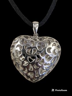 926 Sterling Silver Puffy Heart & Moon Filigree Pendant $58Oxnard, CA