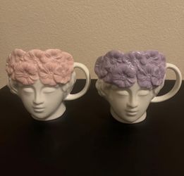 Vintage Style Lady Head Vase Mugs Purple & Pink Flowers$7Deer Park, TX