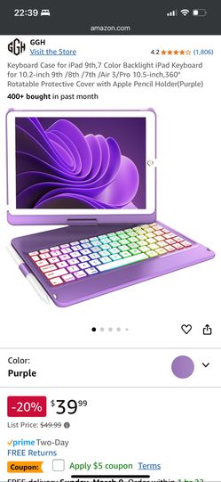 Wireless Keyboard Case For iPad 10.2 Inches (9th Gen, 8th Gen, 7th Gen)$20Miramar, FL