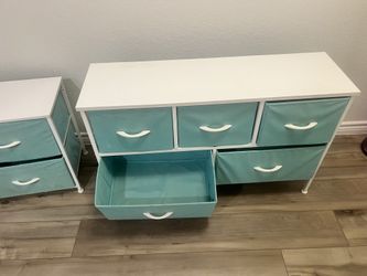 Sorbus Aqua 2-Drawer Nightstand and 5-Drawer Aqua Dresser Steel Frame Wood Top Easy Pull Fabric Bin and$80Robinson, TX