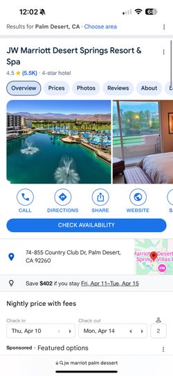 Hotel Room Available At JW Marriott For Coachella Weekend$400Palm Desert, CA
