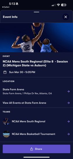 Michigan State Vs Auburn - NCAA Men’s South Regional (Elite 8 - Session 2)$1Atlanta, GA