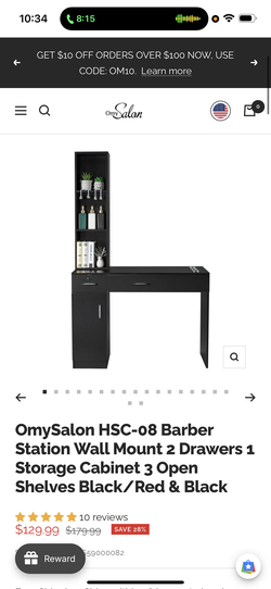 OmySalon HSC-08 Barber Station Wall Mount 2 Drawers 1 Storage Cabinet 3 Open Shelves Black$105Fresno, CA