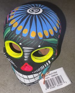 4" Hand Painted Mexican Terracotta Sugar Skull Set Dia de los Muertos Blue Pink$60Mcallen, TX