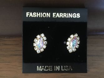Pointed Oval Multi-Shine Moon Stone & Crystal Glass Post Earrings$12Oceanside, CA