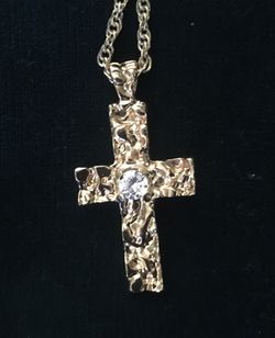 Gold Nugget Style CROSS with 19.5 inch Spiral Wheat Chain Necklace & 1.25 Carat Crystal/Clear Stone$18Oceanside, CA