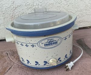 🌼 Vintage Rival Crock Pot Slow Cooker 3355 – Stoneware Blue, 5 Qt, Clear Plastic Lid 🌼$40Oceanside, CA
