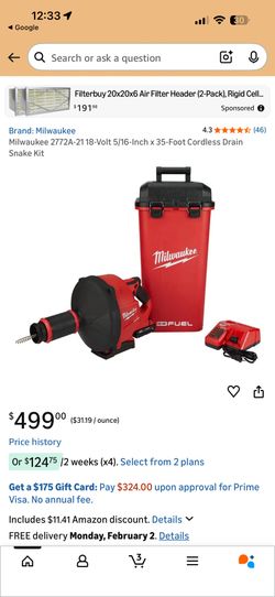 Milwaukee 5/16-Inch x 35-Foot Cordless Drain Snake Kit$310Roseville, CA