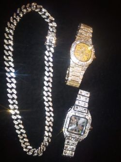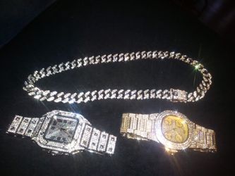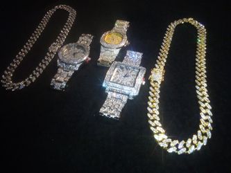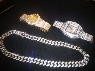 Five Piece Collection Set Austrian Lab Diamond Three Heavy Watch And Two Short 18 Inch Chain$250Atlanta, GA