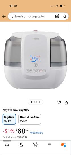 HoMedics TotalComfort Ultrasonic Humidifier with UV-C Technology$15Murrieta, CA