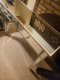 GLASS TABLE ( DOES HAVE CRACK ON ONE OF THE DRAWERS AS YOU CAN SEE IN PHOTO ) LIKE NEW CONDITIONS$140Philadelphia, PA