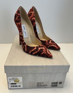 Jimmy Choo Anouk Red Mandarin Snake Print Fabric Pumps 35.5 / 5.5US. New In Box.$299Salem, MA