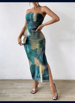 Dresses for Women Sleeveless Tie Ruched Slit Thigh Tube Dress Trendy Dress$25Whittier, CA