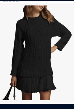 Shiyifa Women's Braided Knit Dress, Round Neck, Pleated, Twofer Style, Long Sleeve, Mini Dress$30Whittier, CA